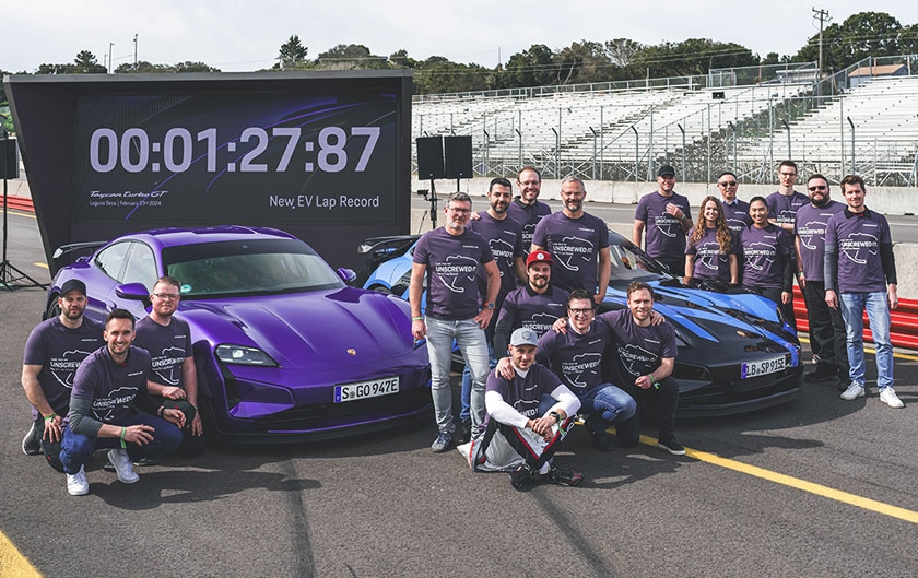 Non classé Le Porsche Taycan Turbo GT avec pack Weissach établit les records du tour à Laguna Seca et au Nürburgring 18/03/24